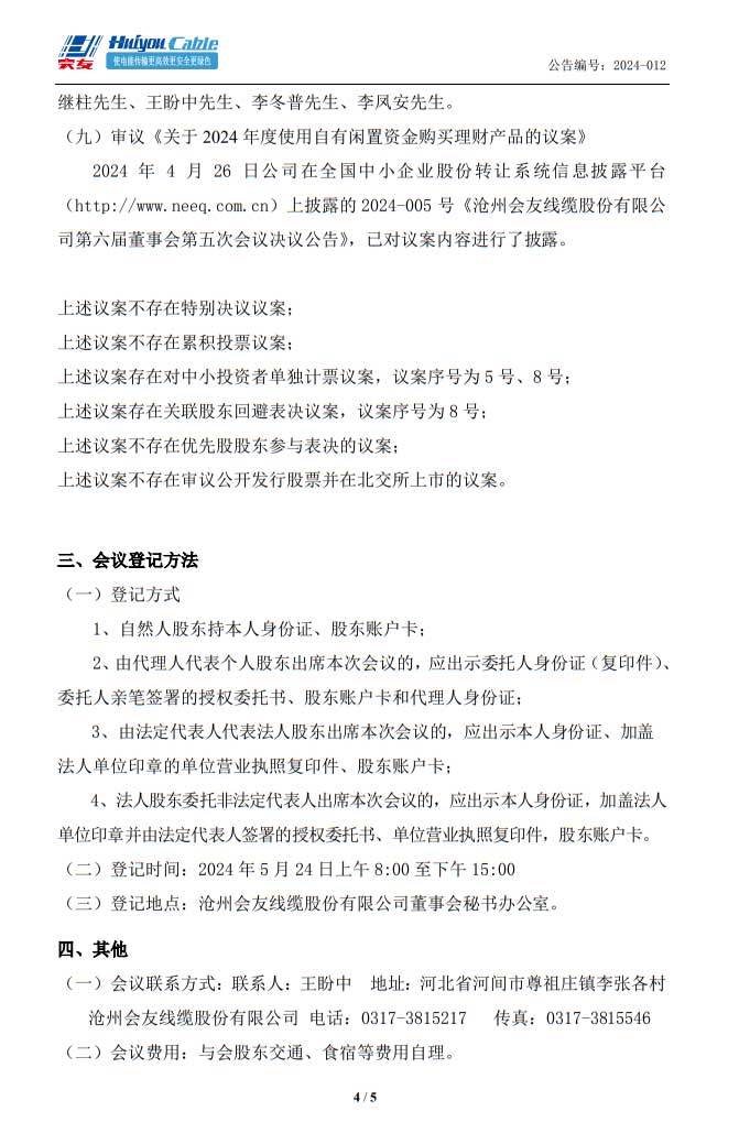 会友线缆_股东大会通知公告