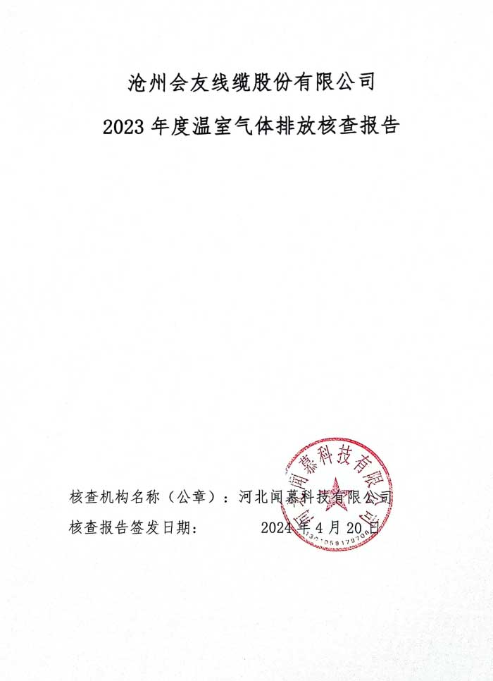 2021--2023年沧州会友线缆股份有限公司温室气体排放核查报告